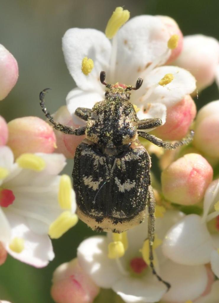Trauer-Rosenkäfer (Oxythyrea funesta), selten.