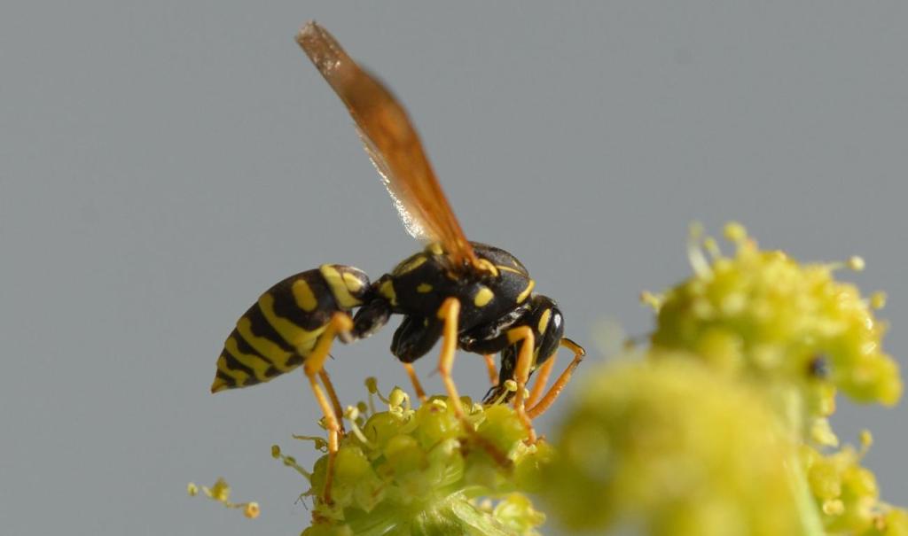 Feldwespe (Polistes gallicus) auf Liebstöckel