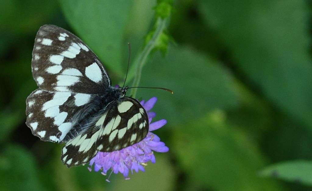 Schachbrett oder Damenbrett (Melanargia galathea) auf einer Skabiose