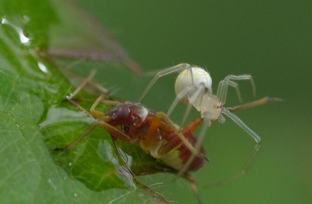 Diese zarte Spinne webt Fangfäden zwischen Blättern und überwältigt auch größere Beutetiere
