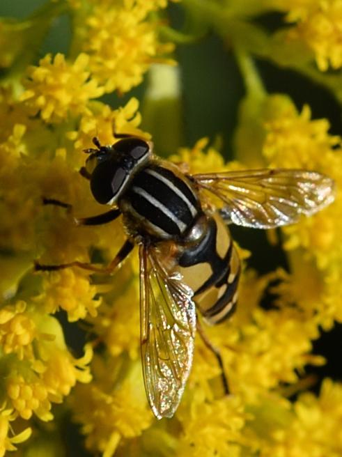 Häufig vorkommende Vertreterin einer sehr artenreichen Familie. Obwohl viele dieser Tiere entfernte Ähnlichkeit mit Wespen aufweisen, handelt es sich hier um harmlose, oft verstörend neugierige Fliegen. Auffällig ist ihr Schwirrflugverhalten, das ihnen auch bei stärkerer Luftbewegung ermöglicht auf der Stelle zu verharren. Die Larven ernähren sich hauptsächlich von Blattläusen, die adulten Tiere von Nektar und Pollen unterschiedlicher Blüten. Bemerkenswert ist die jahreszeitlich bedingte Wanderung in wärmere, südliche Gebiete. Leider sind diese Nützlinge, die Larven vertilgen Unmengen an Blattläusen, durch die Intensivlandwirtschaft und den Verlust von geeignetem Lebensraum stark beeinträchtigt.